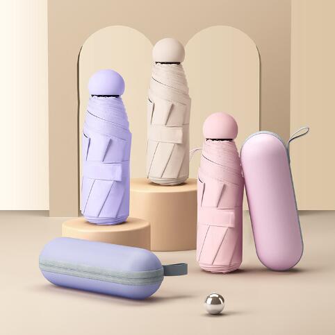 カプセル型のコンパクトなケースに収納できる、最小レベルの折りたたみ傘です。