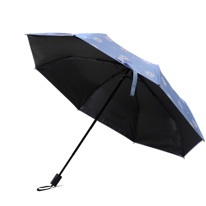 可愛らしいデイジー柄が散りばめられた晴雨兼用の折りたたみ傘です。