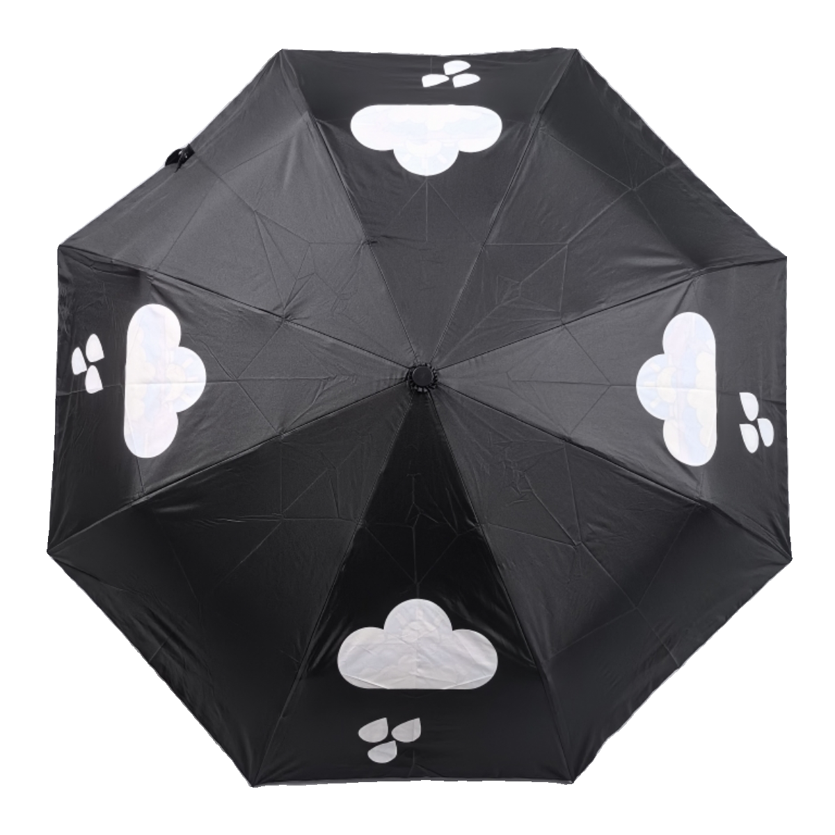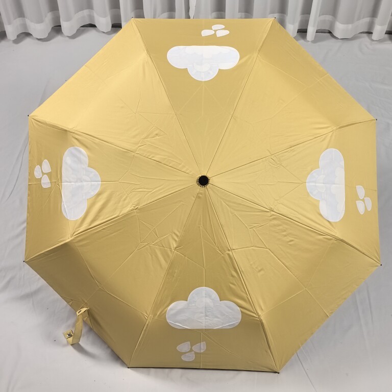 雨の日が楽しくなる可愛らしいデザインの折りたたみ傘です。 傘面には太陽と雲、カラフルな雨粒の模様があしらわれており、雨傘としての機能性と癒しのデザインを両立しました。 コンパクトに収納できる折りたたみ傘なので、鞄に入れて持ち運びも便利です。 軽量で扱いやすく、急な雨にもさっと対応できる実用的なアイテムです。 毎日の通勤通学や外出時に活躍します。