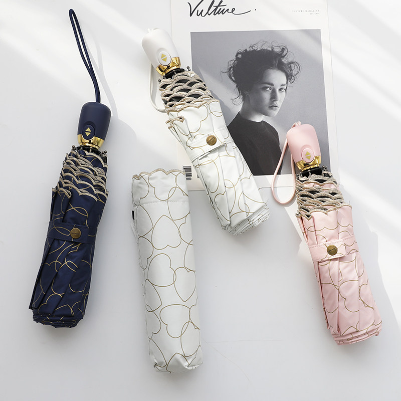 金色の装飾ボタンと上品なデザインが、雨の日も晴れの日も華やかに演出します。