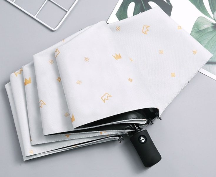 傘面には小さな王冠や花などのワンポイント刺繍が散りばめられており、開くたびに気分が上がります。