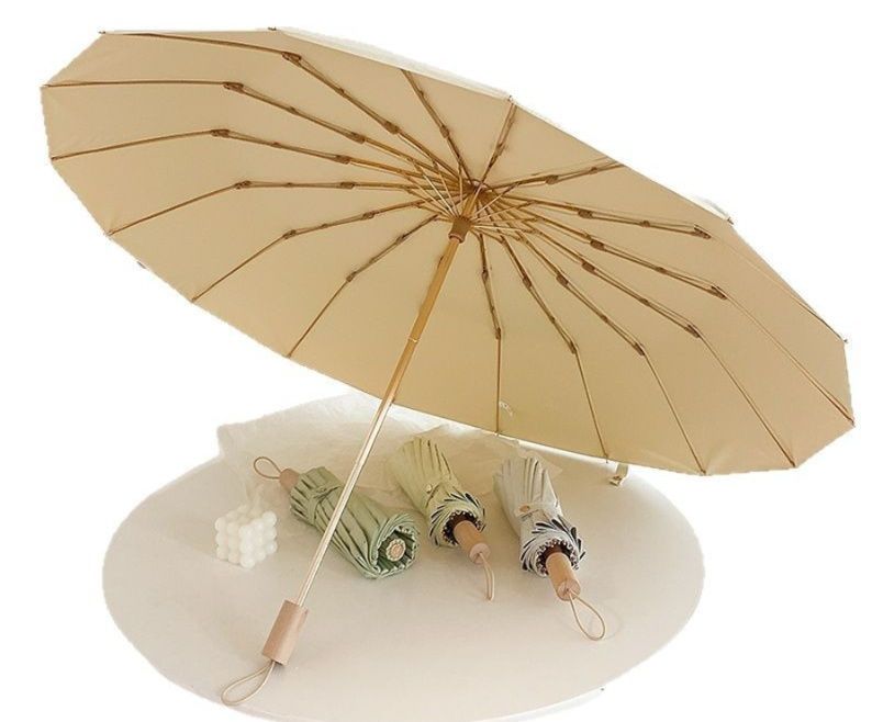 16本の骨組みで強度を高めた耐風性に優れた折りたたみ傘です。
