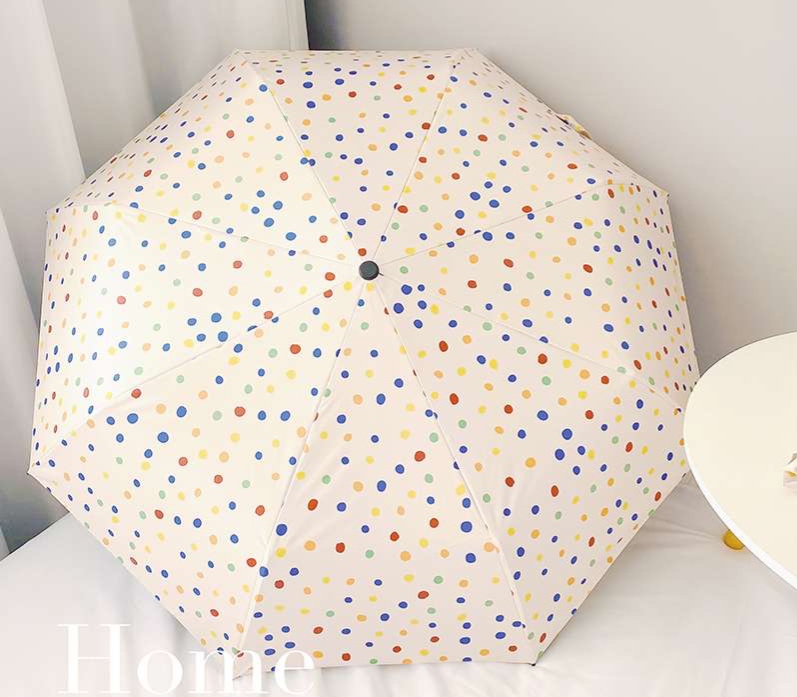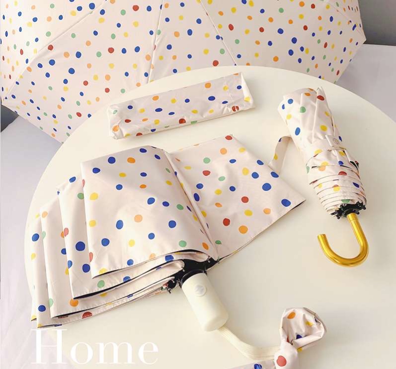 可愛らしい水玉模様が魅力的な折りたたみ傘です。